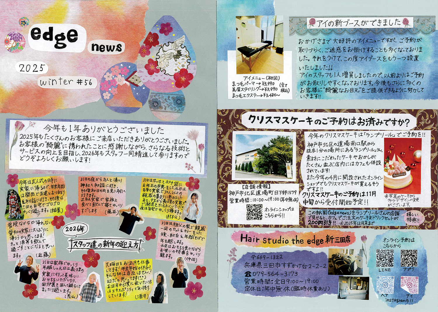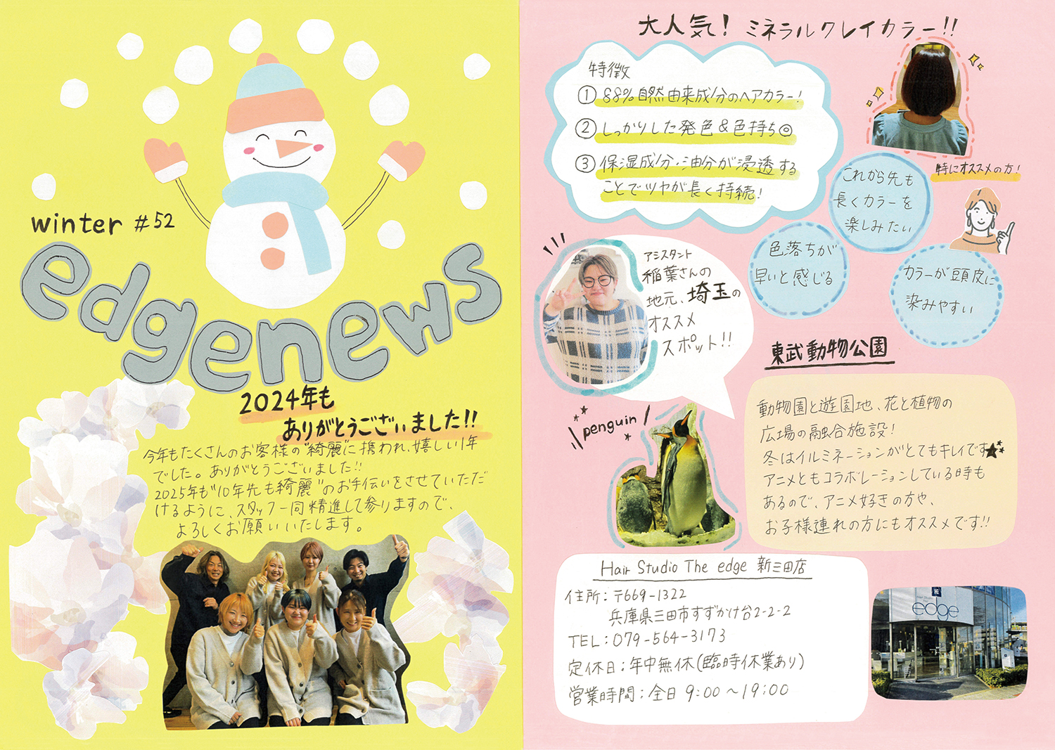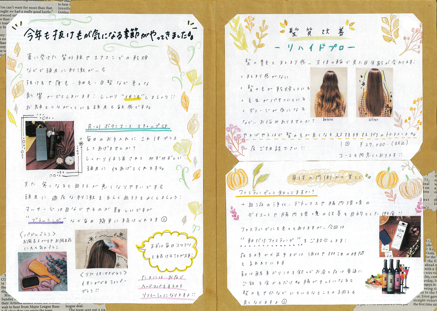 スタッフ手作りの新聞でサロンの最新情報をお届けします!ぜひご覧ください!(年4回発行)