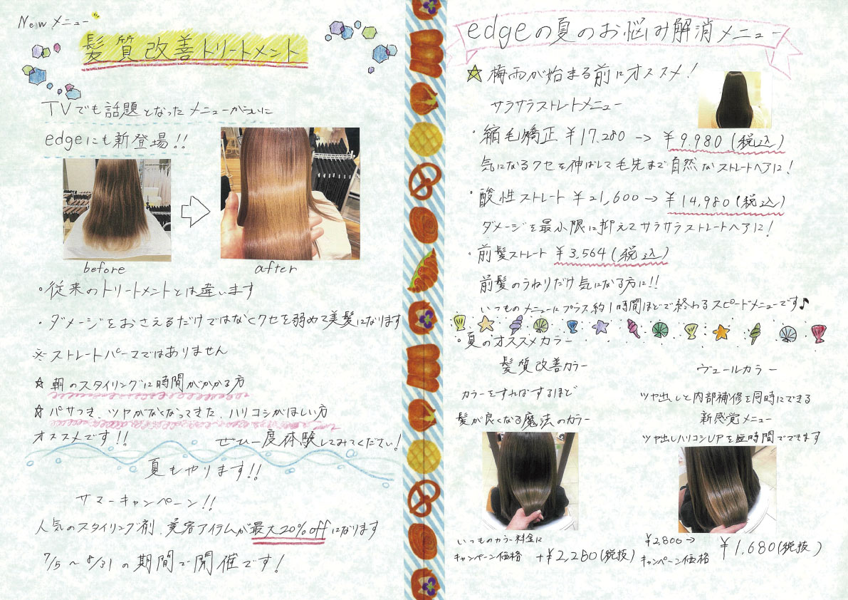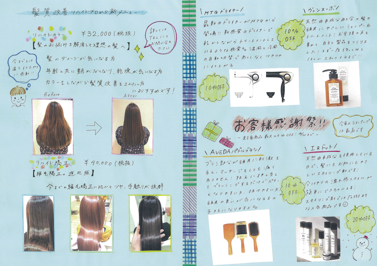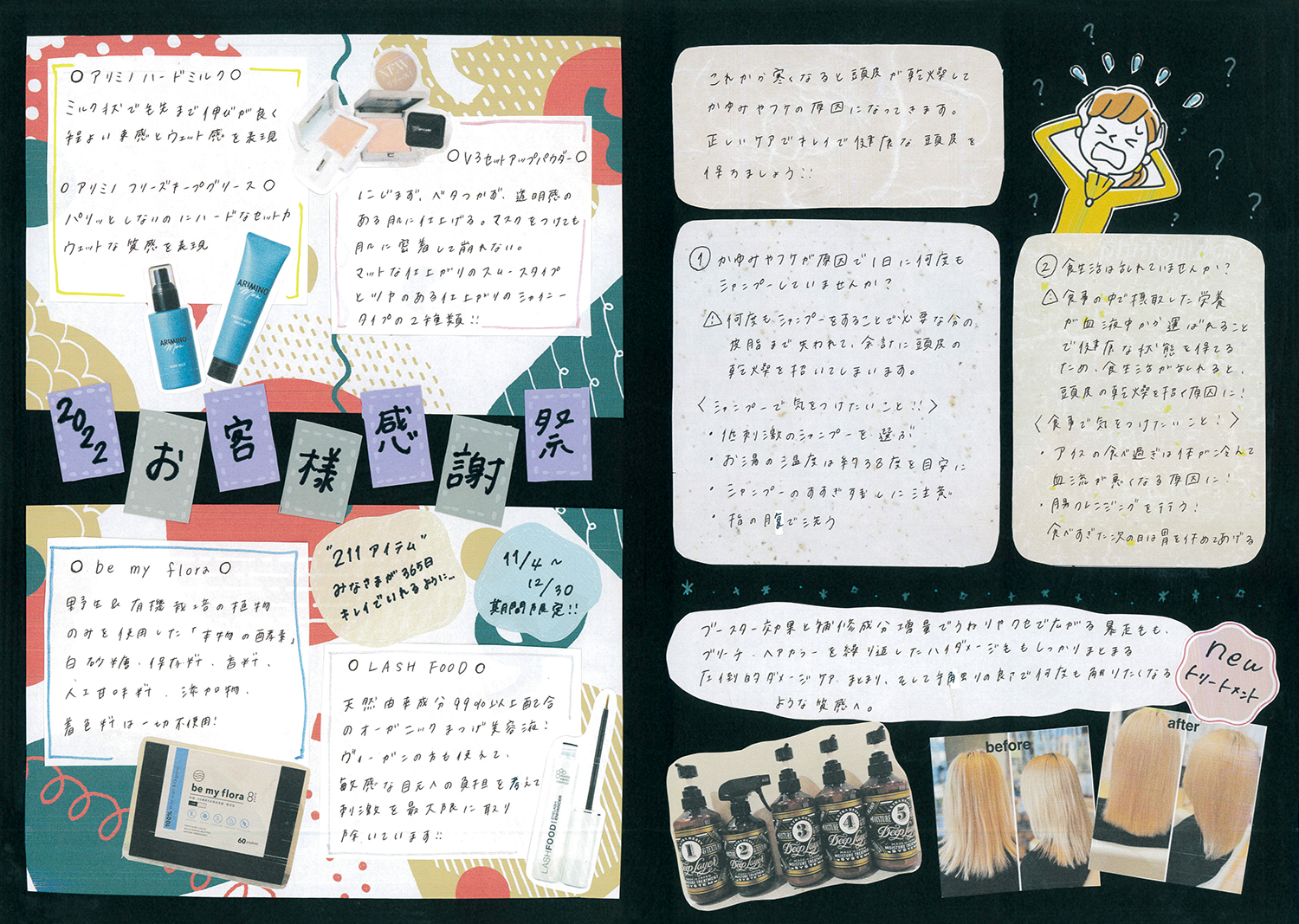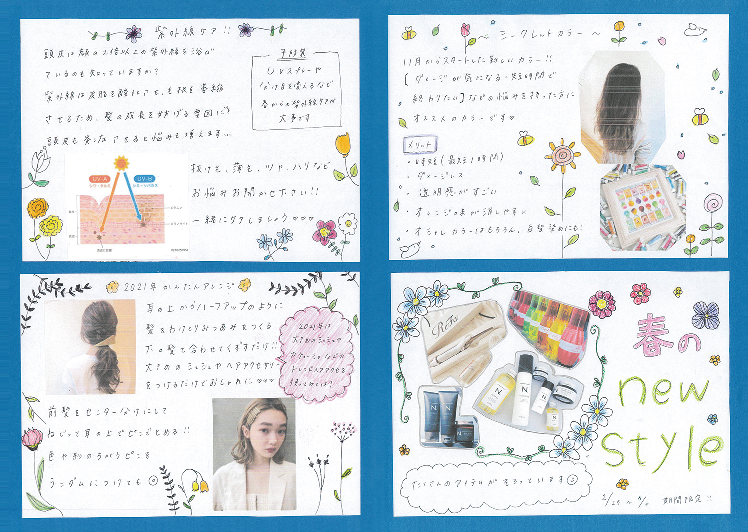 スタッフ手作りの新聞でサロンの最新情報をお届けします!ぜひご覧ください!(年4回発行)